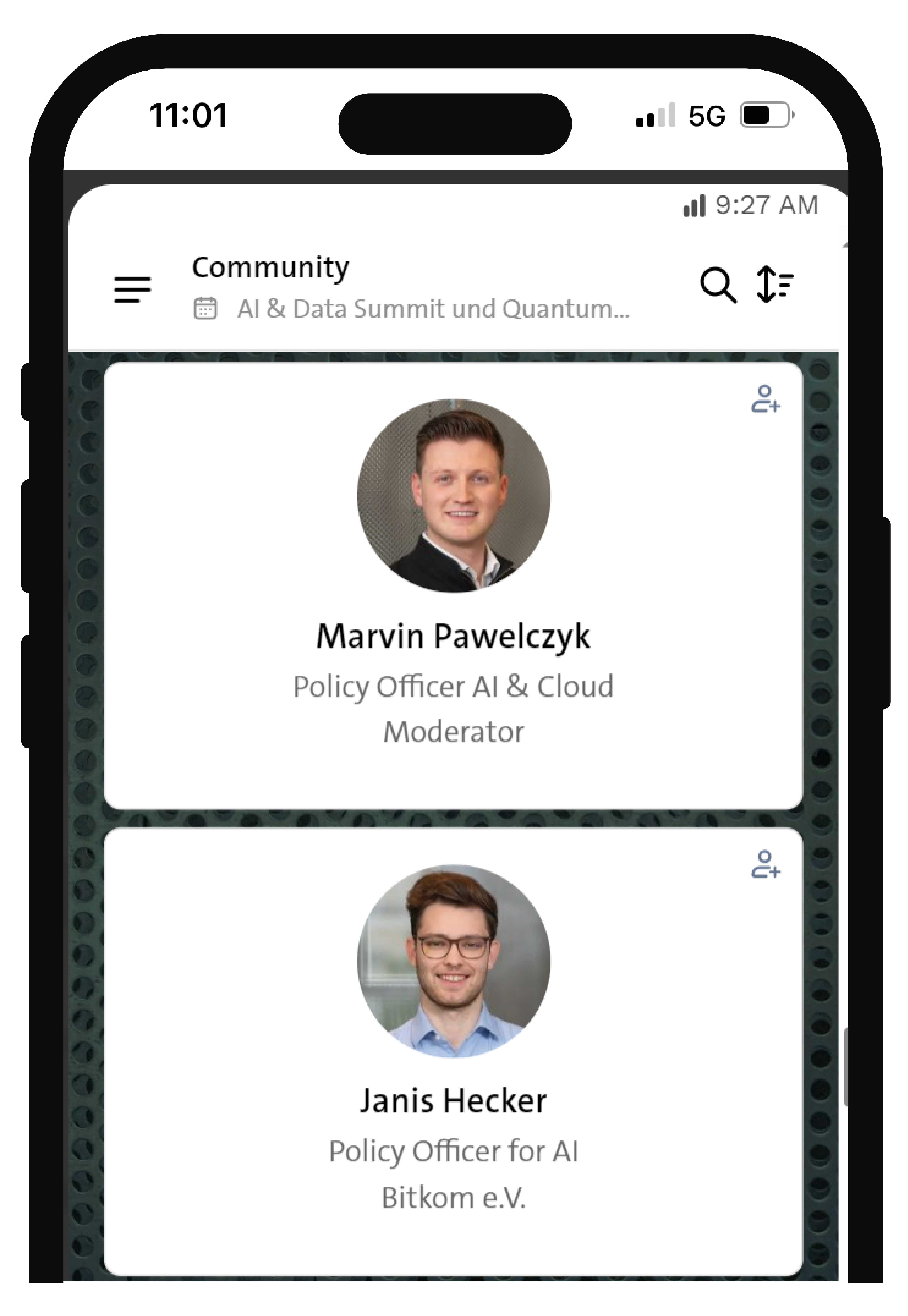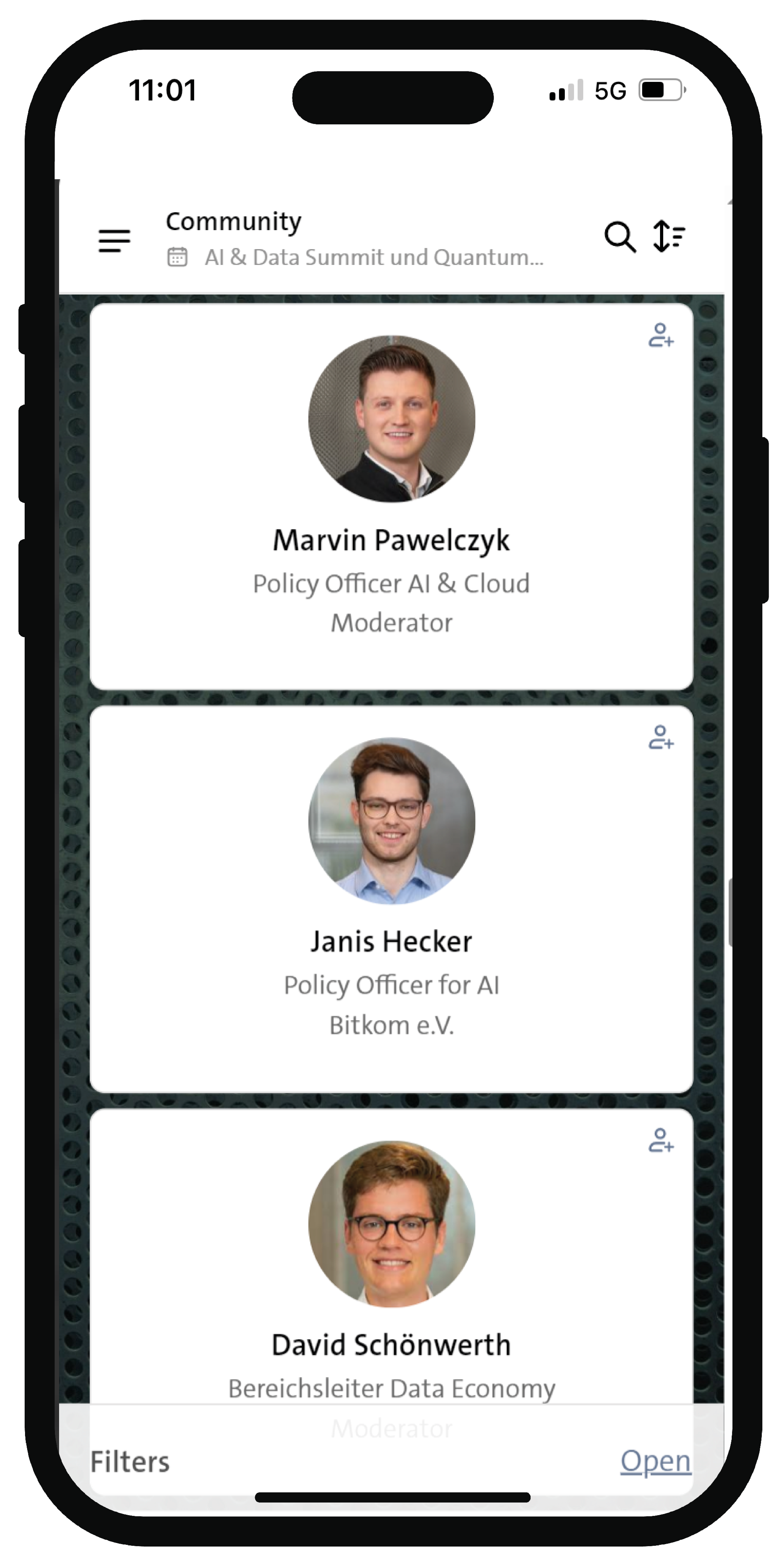 The Bitkom Events App offers you a detailed overview of all speakers. Learn how you can connect with them.